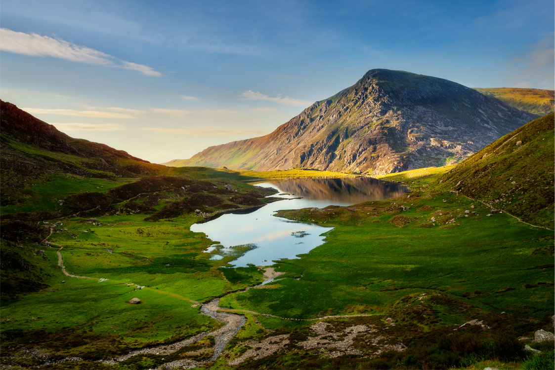 On the first day, we went to Llyn Ogwen, it was pouring with rain, but it was so atmospheric. We pulled up in our camper van, making a cup of tea, just looking out over the lake. I took a few shots, waiting for some light to emerge – eventually, it did, but it was fleeting. As the light went, we thought it was time to go to our campsite – just down the road at Gwern Gof Isaf. A Campsite that has been operating since 1906, no-frills, but a beautiful site. We decided to take a walk to explore the area. The mountain Tryfan dominates the landscape, so we began walking towards it. I am always drawn to photographs with historical or archaeological foregrounds, particularly since shooting for book covers. Straightaway we found an enclosure – now I think it was just for the sheep (insert laughing face here). But there are so many Neolithic and Bronze age settlements in the Snowdonia national park, so I was not sure. The clouds came menacingly over the brow of Tryfan and, so with my wide-angle lens I put the enclosure in the foreground with Tryfan right behind. It is a brooding shot. The rain-filled clouds soon reached us, and it poured. Facing defeat, we went back to our camper for a hot chocolate and a good night’s sleep.
