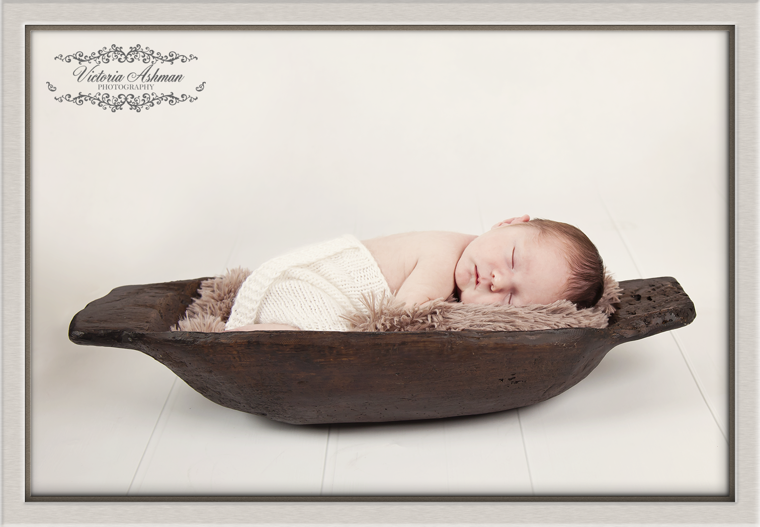 Above is the digital backdrop. An oval basket on a wooden floor with wallpaper backdrop. Below is the image with a baby added. This is really useful, particularly if baby is fussy and doesn’t want to be moved very much. Then, if the parents have their hearts set on a particular set up, we can still achieve it.  Victoria x